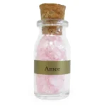 Conteúdo da embalagem: uma garrafinha com cristais naturais de Quartzo Rosa.